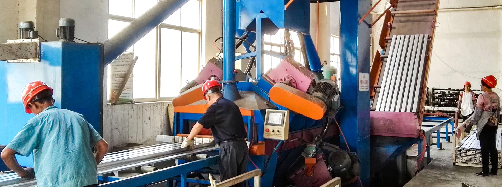 專業(yè)生產(chǎn)多種鋁合金型材及制品的企業(yè),已有二十多年的經(jīng)驗(yàn)和歷史。現(xiàn)有鋁型材擠壓設(shè)備四套,分別為1800T、1000T、630T、600T擠壓生產(chǎn)配套設(shè)備有10m長(zhǎng)不銹拋丸機(jī)。6m鋁型材表面拋光機(jī),4.5m普拉迪鋁材加工中心,多臺(tái)高精度自動(dòng)切割機(jī),雙頭轉(zhuǎn)向切割機(jī),備有12m長(zhǎng)時(shí)效爐。